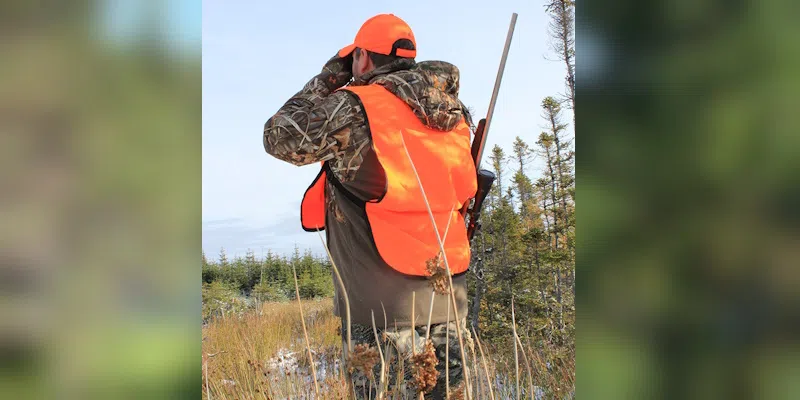 A hunter wears blaze orange to stay visible and safe during the hunting season (Government of Newfoundland and Labrador).