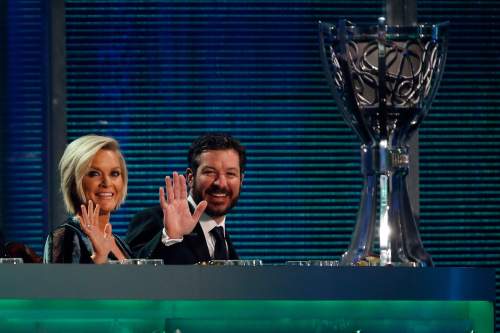 LAS VEGAS, NV – NOVEMBER 30: Monster Energy NASCAR Cup Series Champion Martin Truex Jr. and his wife Sherry Pollex attend the Monster Energy NASCAR Cup Series awards at Wynn Las Vegas on November 30, 2017 in Las Vegas, Nevada. (Photo by Jonathan Ferrey/Getty Images)