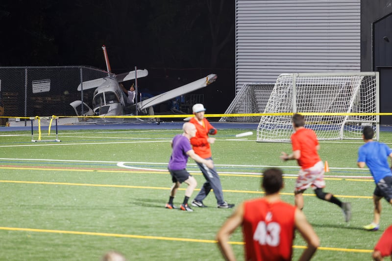 Plane crash Sept. 15 east Toronto Ultimate frisbee players continue their game after a plane crashed just metres away in Toronto’s east end on Sept. 15. (Jacob Estrin/CTV News Toronto) Fire chief said plane came through trees and skidded into a fence