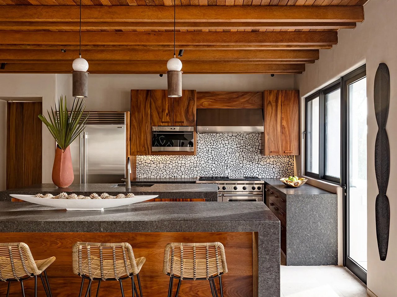 The house works as well as it looks. Passive cooling keeps things comfortable in the coastal heat, while water recycling systems and native materials like stone and wood make the home both sustainable and authentically Mexican. These aren’t afterthoughts—they’re integral to how the house feels and functions.