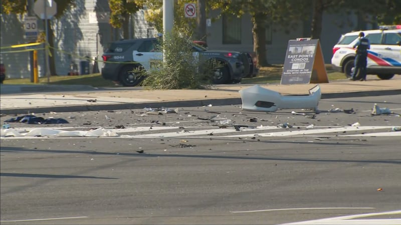 crash Shards of debris scattered across an intersection in Scarborough after a multi-vehicle collision on Sunday September 21, 2025 (CP24 photo).