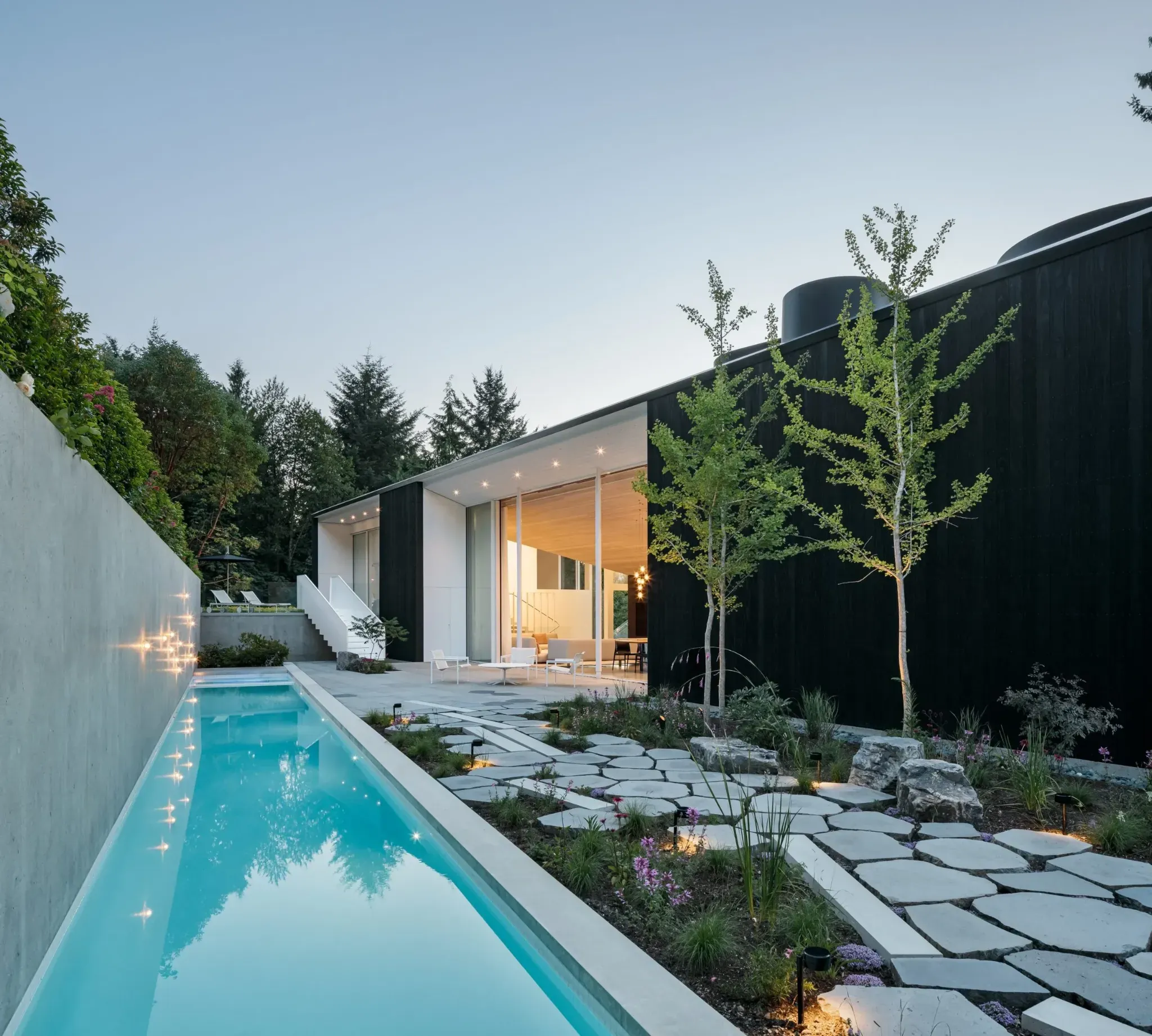 The Sanctuary’s outdoor terrace and pool, designed by BattersbyHowat Architects. (Ema Peter/West Coast Modern)