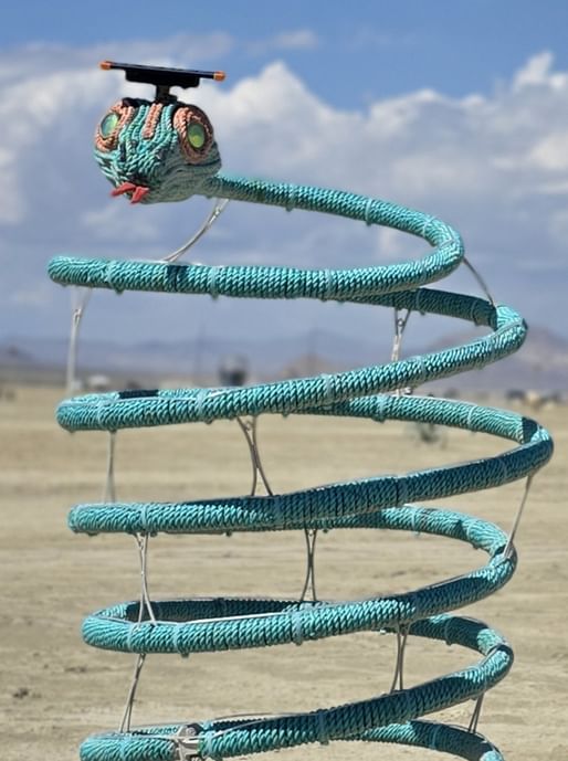 The festival’s architectural lineup also included SsssWhirlwind by Amy Charbonneau, also known as CreARTive Warrior. The installation combined the chaos of a whirlwind and the wisdom of a snake together, symbolizing the power of cycles and transformation. “The idea speaks to the spirals of mental health and the ability to remain anchored as your own eye of calm through any upheaval and the uncomfortable process of shedding outdated skins through continuous transformative events in our lives,” the team added.