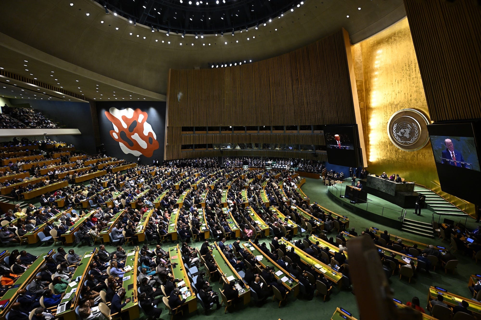 President Donald Trump speaks during the 80th United Nations General Assembly (UNGA) in New York on September 23, 2025. (Photo by Celal Gunes / Anadolu via Getty Images.)