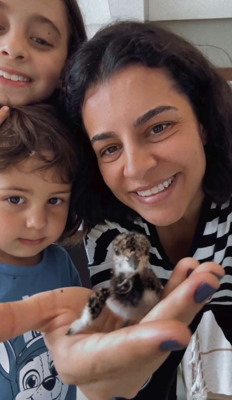When Henriques realized it wasn’t possible to reach the desperate baby bird, she and her kids went to the store and bought a handled net.