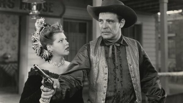 Diana Barrymore and Lon Chaney Jr. in 1943’s Frontier Badmen.