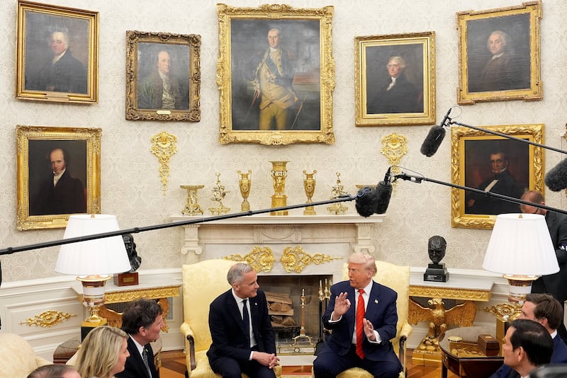 Mark Carney Donald Trump meeting Prime Minister Mark Carney and U.S. President Donald Trump engage in a meeting at the White House in Washington, D.C., Tuesday, May 6, 2025. THE CANADIAN PRESS/Adrian Wyld (Adrian Wyld/The Canadian Press)