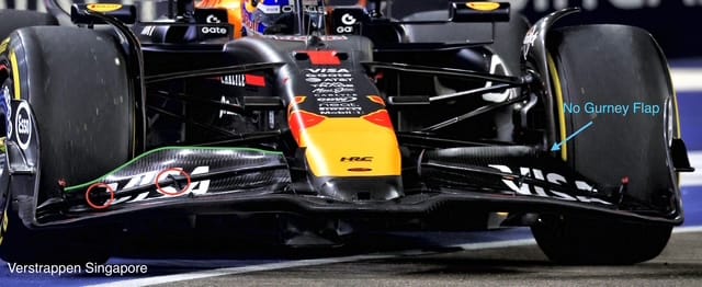 It’s a surprise, given Max is a driver who hates understeer, that he’s not using the Gurney flap.