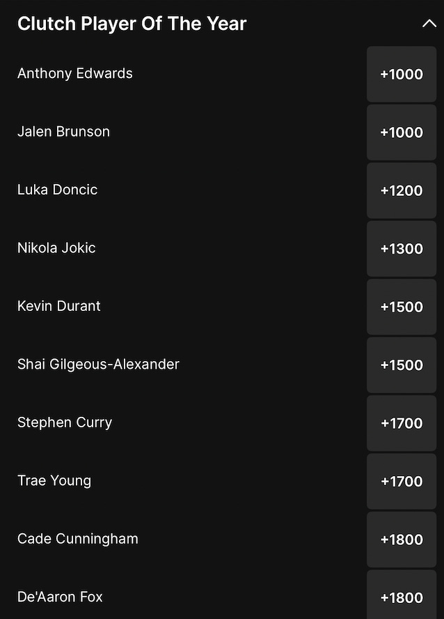 On the bright side, the Knicks do have a defending champion for one of these belts, and Jalen Brunson is the co-favorite to take home the Jerry West Clutch Player of the Year award once more. Courtesy of our friends at Fanatics Sportsbook, he currently has 10-to-1 betting odds along with Anthony Edwards and just above a host of recognizable names: