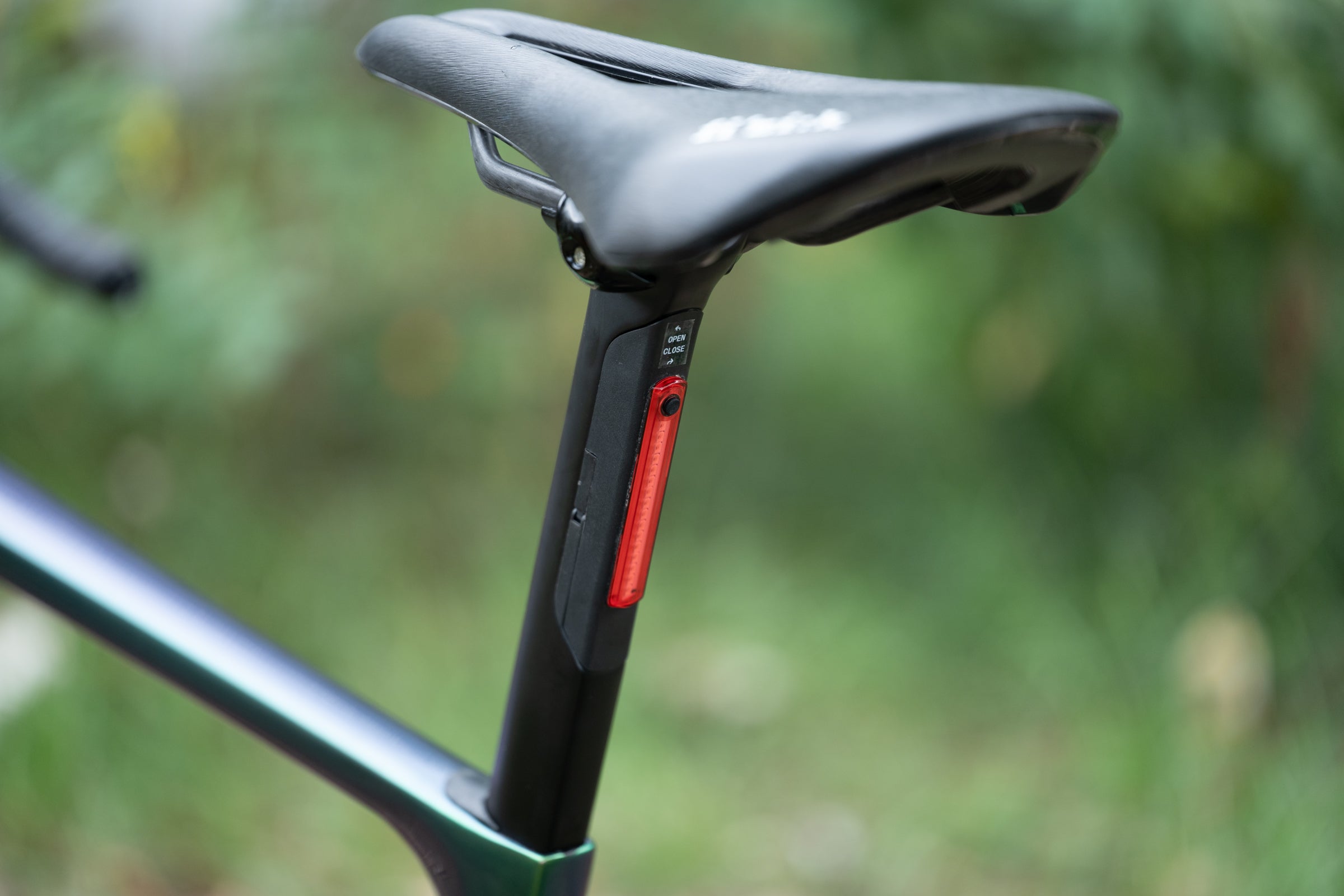Details that persist are the rear wheel cutout, fully aero seatstays and seattube junction, and an aero seatpost with a Ritchey clamp. Like the downtube though, the new seatpost now includes a quality of life update. Not storage in this but rather a rechargeable light that pushes out 25-lumens or can be replaced with a cover if not needed.