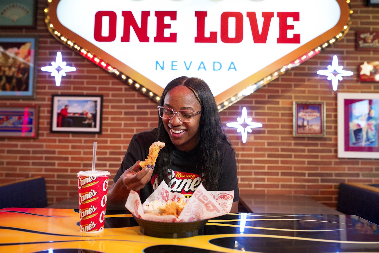 Open late, famously delicious, and in close proximity to the team’s home at the Michelob ULTRA Arena, Raising Cane’s Chicken Fingers is a “go-to” post-game dining option for Las Vegas Aces star Jackie Young.