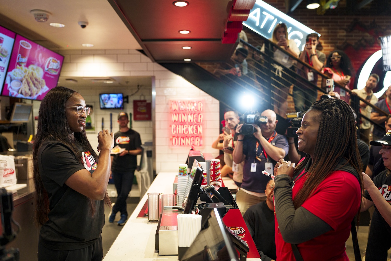 Indeed, “The Silent Assassin” became the latest sports superstar to work an honorary Raising Cane’s shift. In her case, the shift celebrated the Aces’ third WNBA Championship in four seasons.