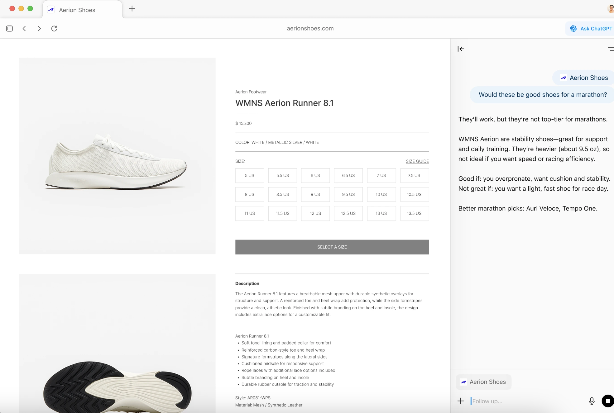 Whenever you click a link from a search result in Atlas, it’ll by default show a split-screen with the webpage and the ChatGPT transcript, with the goal being to display a “companion” at all times, employees said, though a user can turn off the split-screen if they’d rather. On the livestream, employees also demonstrated the browser’s summarization features for webpages, as well as selecting text from an email and clicking a button to have ChatGPT tidy up the sentence in-line — the latter feature is called “cursor chat.”