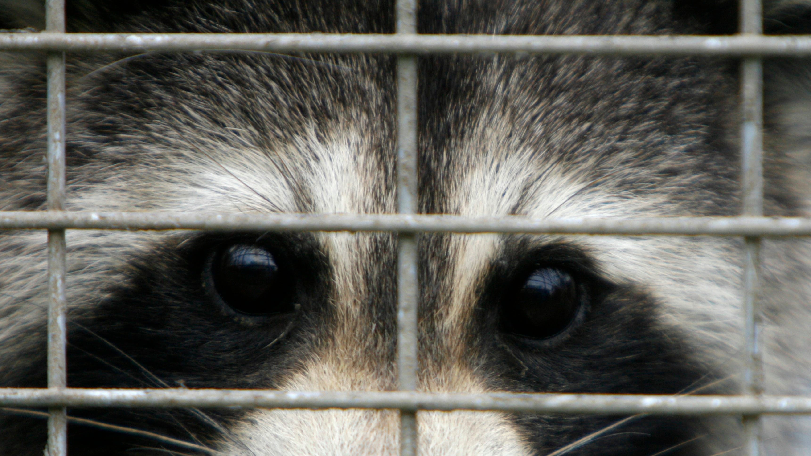 A captured raccoon peers through the bars of a trap in Grand Isle, Vt., Thursday, Sept. 27, 2007. A federal program is trying to stop rabies from crossing the border into Canada. Bait has been dropped from airplanes, raccoons have been trapped and vaccinated and others are routinely trapped, tested for the vaccine levels, and then released. The program runs from Maine west to Pennsylvania. (Toby Talbot/The Associated Press)