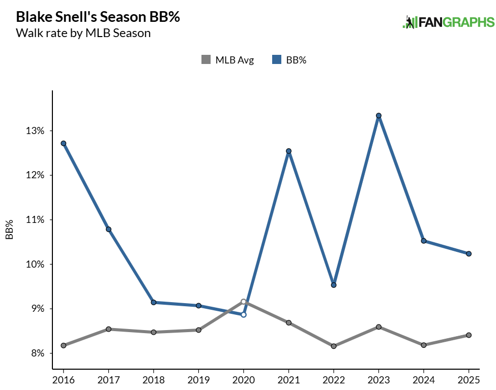 With that in mind, it’s tough to point to a clear weak spot, but Snell is a pitcher who often works outside the strike zone and has been known to struggle with walks.