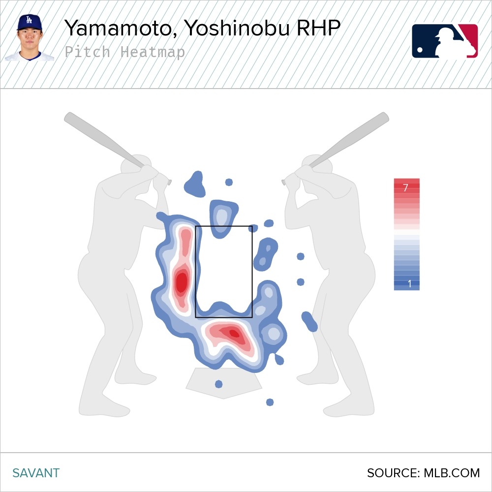 The combination of increased velocity, excellent command, a proven whiff-generating splitter and a nasty curveball makes Yamamoto a headache right now — and he has three other pitches we haven’t even mentioned in this summary (cutter, sinker and slider) that are all credible offerings.