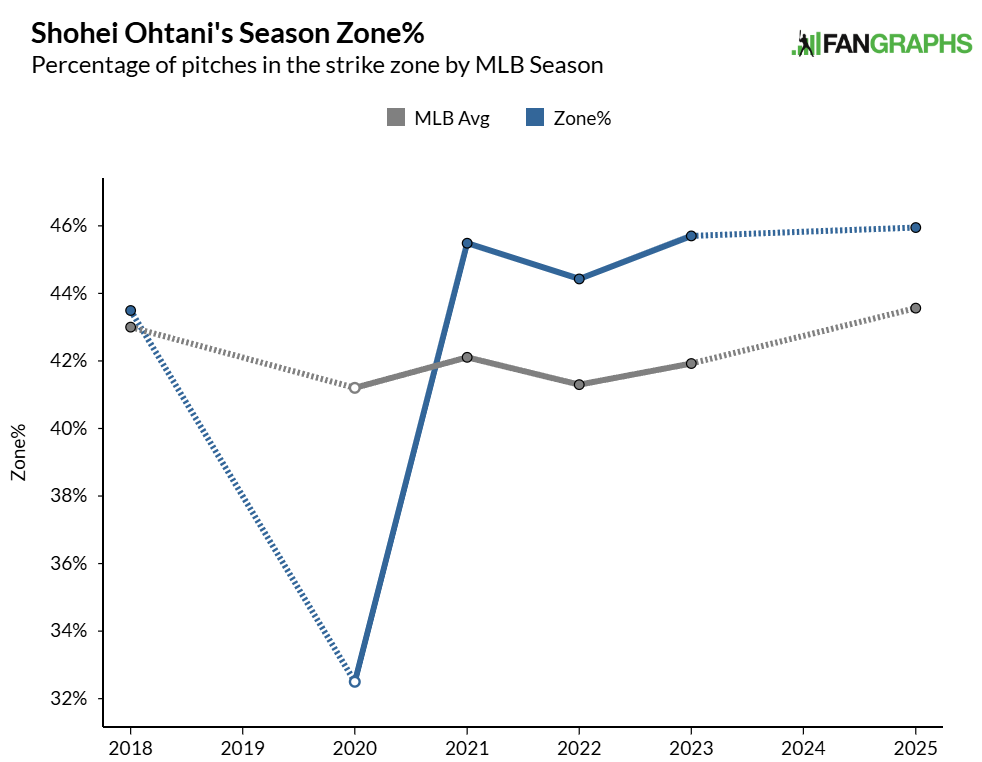 One aspect of Ohtani’s style that is arguably both good and bad news for Blue Jays hitters is that he’s consistently in the zone.