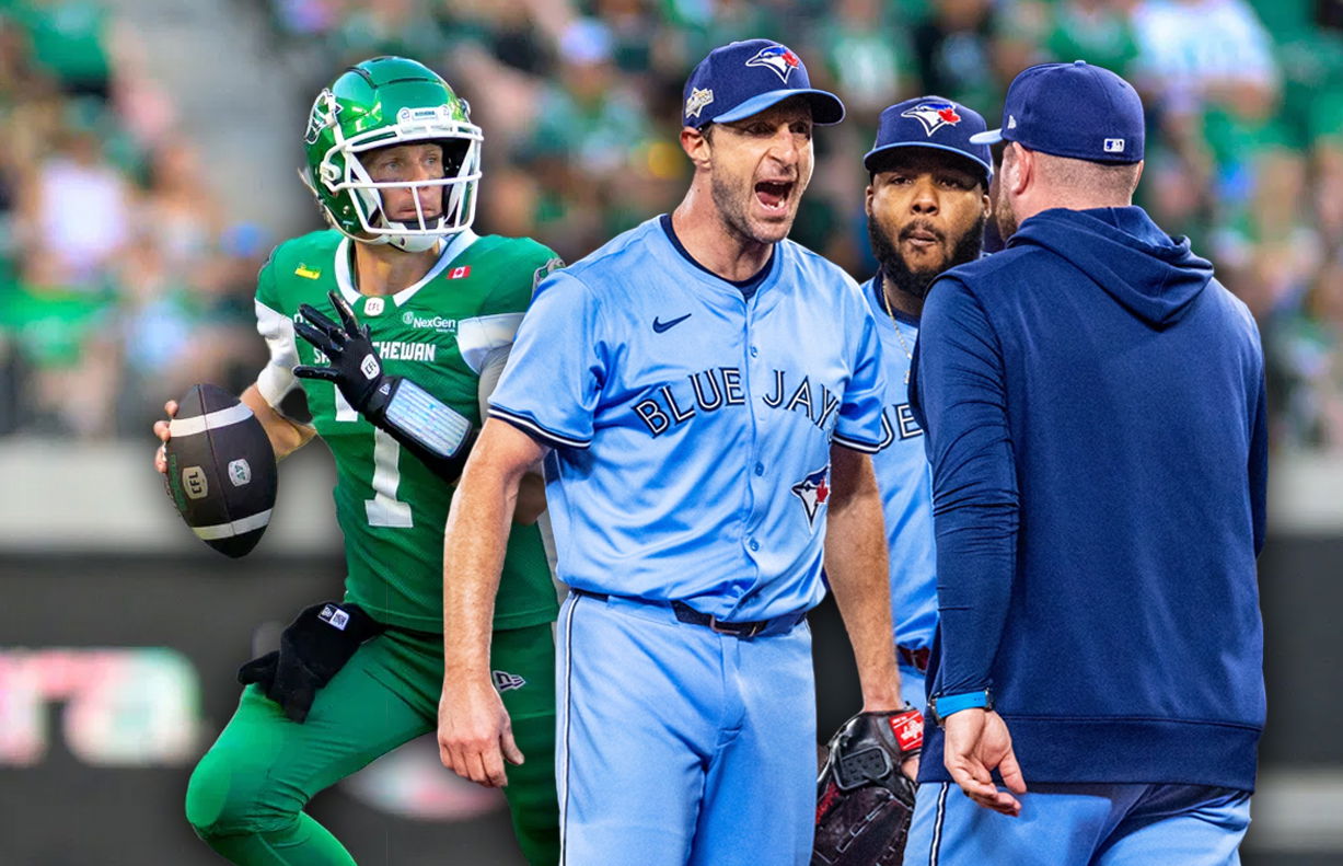 Photos: Saskatchewan Roughriders and Toronto Blue Jays. Photo edit: 3DownNation.