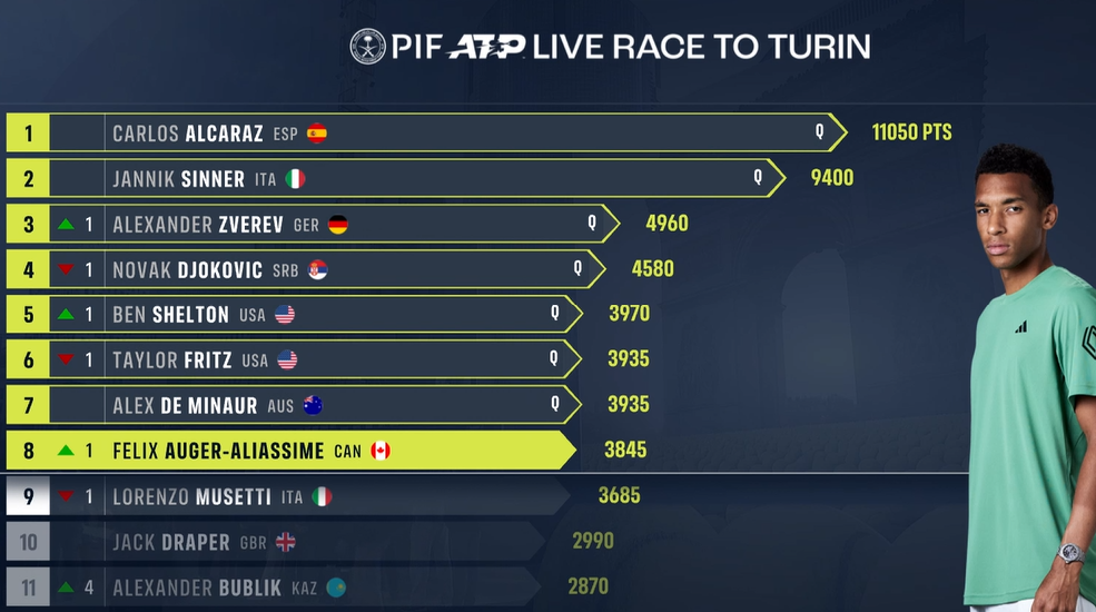 With the win, the 25-year-old Canadian also moved into 8th place ahead of Lorenzo Musetti in the Race to Turin standings.