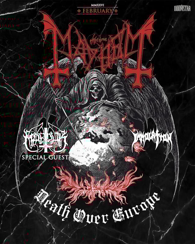 MAYHEM will embark on the “Death Over Europe” European headlining tour in February 2026. Support on the trek will come from MARDUK and IMMOLATION. The dates are as follows: