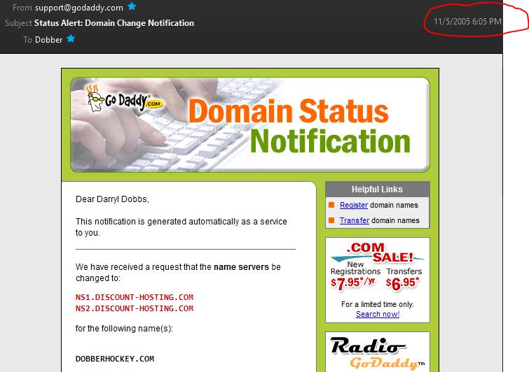 But 20 years ago, on November 5, I decided to make things more legitimate so I went to godaddy to register fantasyhockey. Well that, of course, was taken. And not only that, but Ian Gooding managed it! So I decided to use Dobber. Oddly enough – taken! To this day, that’s still a dead page and they want like $100,000 for it. Alright, I’ll go with DobberHockey.