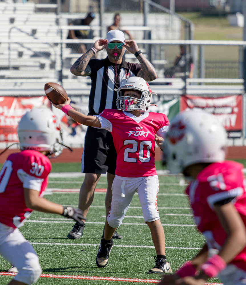 You don’t realize how much you’ve been walking until you suddenly don’t have to. On the R7, my Canon EF 70–200mm f/4 morphs into a 112–320mm equivalent. On a youth football field, that shifts your map. I found myself planting at the numbers and staying put because the far hash was no longer a “maybe.” The quarterback’s eyes, the running back’s elbow angle at the cut, the jersey pull that the referee somehow misses—I could live in those details without taking a single step closer. On the 6D, I’ve always loved the way a 200mm frames a whole person, the way full frame breathes. On the R7, 200mm becomes a microscope.