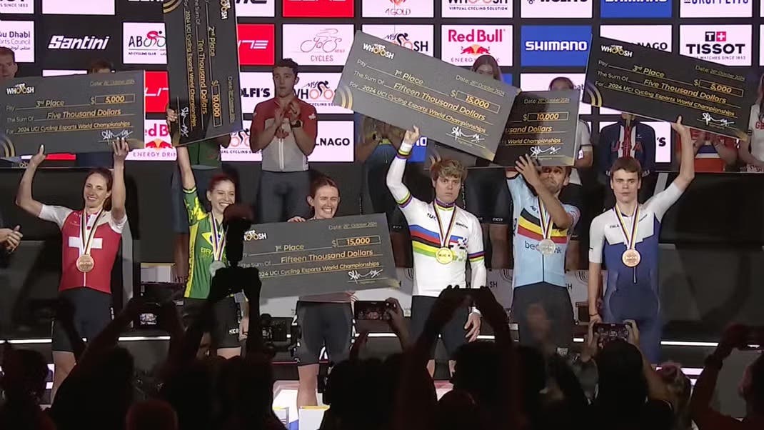 Osborne earned $15k last winter when he won the virtual rainbow jersey. The German stands to win the same again on Saturday at the 2025 UCI worlds. That’s more than what Pogačar was handed along with his rainbow stripes in Zurich or Kigali.