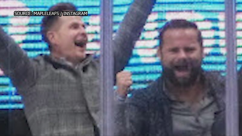 Piccini, Zakarow at Leafs game Jan. 17, 2023 MPP David Piccini is seen with Peter Zakarow at a Toronto Maple Leafs game on January 17, 2023. (Maple Leafs/Instagram)