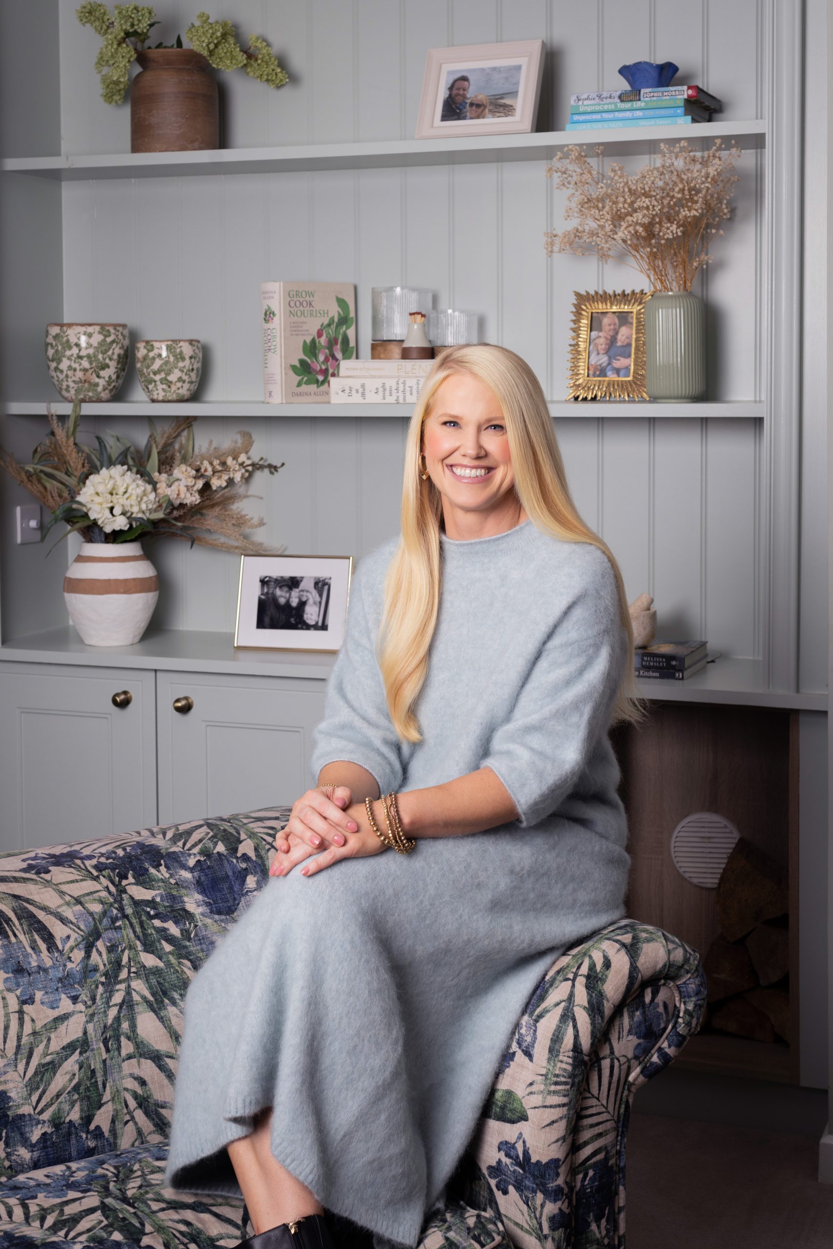 Sophie Morris opens the door of her family home in Greystones, Co. Wicklow, beaming. We step into her dusky pink wood panelled hallway, the kitchen to the right drenched with light, with a view out over Glen of the Downs, and to the left, her living room, recently done up, painted a calming pastel sage. Wearing cool baggy jeans and a soft cashmere jumper she ushers us gently into her kitchen, which is spotless (not usually the way, she tells us, with two wild boys, Wrio, (6) and Max, (4)). A vase of wildflowers sits on the dinner table, some children’s toys are tucked away by the window, on the island is a fruit bowl and a plate of salted chocolate berry and peanut butter bark, a recipe straight out of her bestselling book.