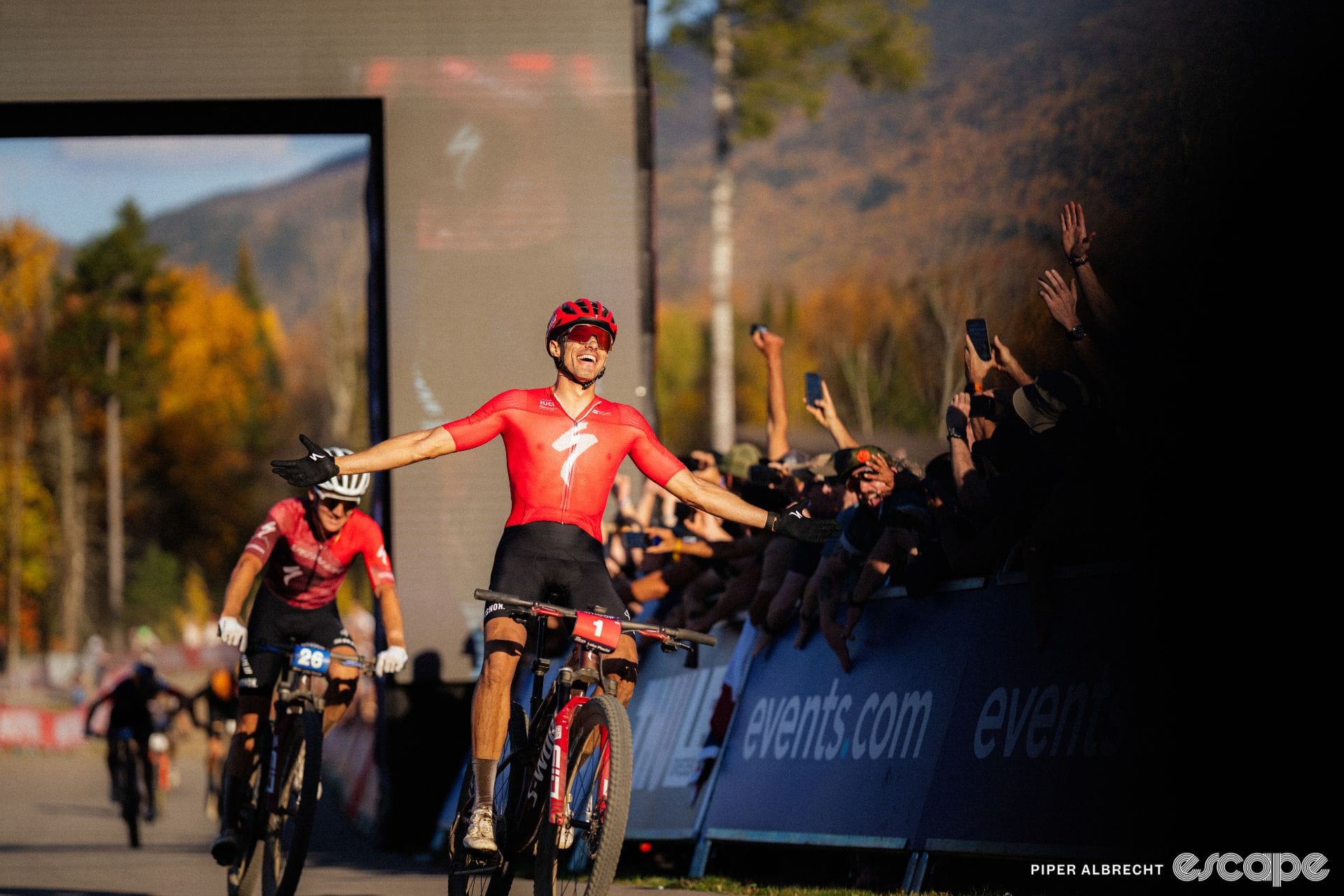 It’s moments like this that sum up what makes elite XC races so difficult to win. Races last 75 to 90 minutes, but the effort is anything but steady. Short, punchy climbs one to three minutes long are punctuated by technical descents, sudden accelerations, and all-out sprints. Riders spend the race bouncing between max efforts and fleeting recovery windows. Success demands a combination of raw strength backed up by the ability to go deep into the red repeatedly.