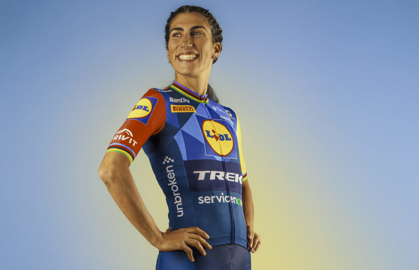 Lidl-Trek’s new kits also put a fresh spin on an instant classic, with cross-pattern gradients of the team’s iconic red, blue, and yellow color scheme. And get this: Replica kits are also available for purchase (you can shop here!), so now you too can stand out in your group ride.