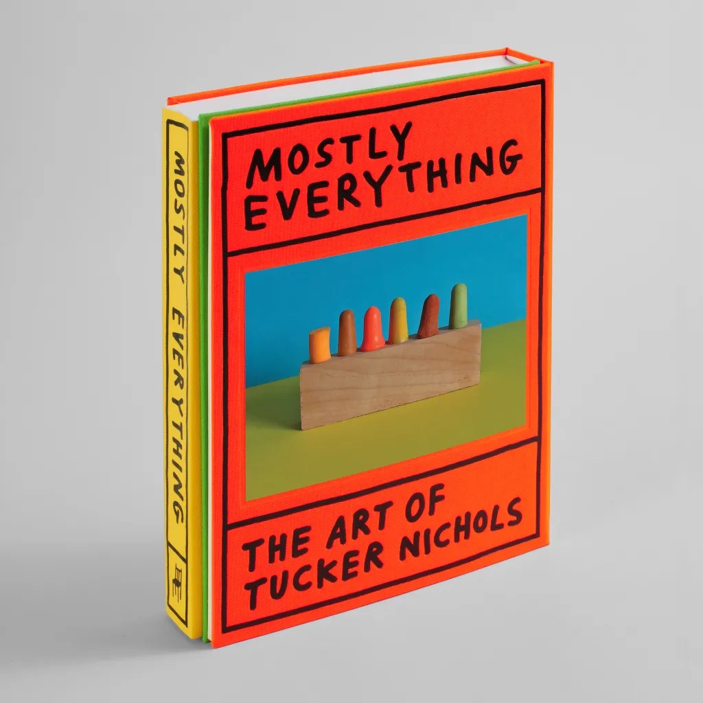 The first career-spanning book from Bay Area artist Tucker Nichols, Mostly Everything: The Art of Tucker Nichols attempts to capture, in one extravagant volume, decades of the artist’s varied work, from drawings with words, drawings without words, paintings and sculpture, to large- and medium-scale public works, editorial illustrations, picture books, doodles, notes, charts, lists and more. Bound in a luxurious, hard-to-describe double-hardcover book, with two spines and two overlapping cover boards, and clocking in at over 300 full-color pages, Mostly Everything: The Art of Tucker Nichols contains a lifetime of making that can’t quite be contained.