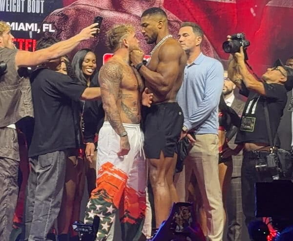 These are the official weights from the commission weigh-in, before the ceremonial weigh-in for the Jake Paul – Anthony Joshua show tomorrow night in Miami: