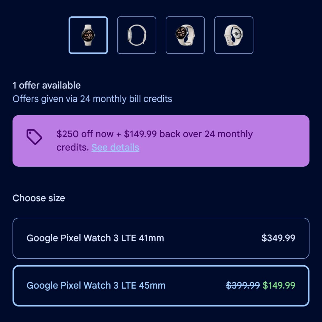 Google Fi Wireless members can essentially get the 45mm Pixel Watch 3 LTE — 41mm model excluded — for free. The 2024 wearable is $250 off on the Fi store. This will “automatically apply during checkout.”