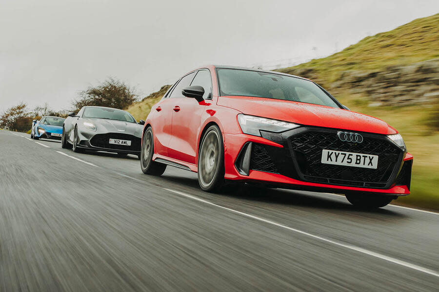 How about an Audi RS3, then? This is a hatchback that’s perhaps hyper rather than hot, but at least the market for these 400bhp four-wheel-drive family machines remains relatively buoyant. In the past, this hottest of A3s has flattered to deceive: the offbeat growl and prodigious power of its five-cylinder engine has been let down by a flat-footed chassis.