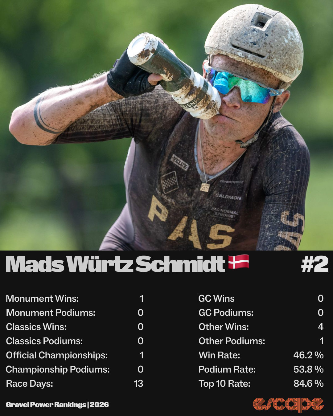 I think it’s hard to argue against the fact that Matt Beers had the best overall season in gravel racing. The only rider who, based on head-to-head data, would have an argument to rank ahead of Beers is Mads Würtz Schmidt. But the amount of prestige wins Matt collected in 2025 outweighs this minor flaw in his application for the top spot.