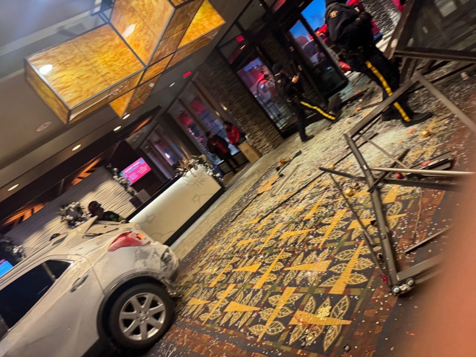 Photos and video from earlier in the afternoon showed a car resting against the hotel elevators.