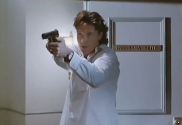 The imposingly tall Thomas Ian Griffith, best known for his iconic role as Terry Silver in The Karate Kid Part III, put his martial arts skills to good use in Crackerjack. He plays Jack Wild (yes, that’s really his name), a PTSD-inflicted Chicago cop who is also a loose cannon. While on vacation with his brother and sister-in-law at the Rocky Mountains resort, a group of terrorists led by Ivan Getz (Christopher Plummer) hijacks the place to get his hands on the stolen diamonds.