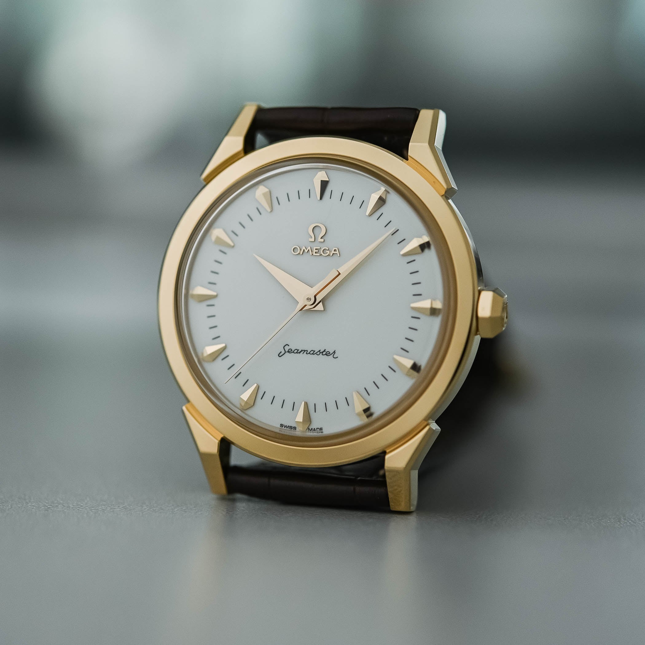 This 37mm Moonshine Gold edition is inspired by the 1956 Seamaster XVI “Cross of Merit” and the 2008 Seamaster XXIX. It brings back the “dog-leg” lugs and the mid-century style of the earlier models. The polished gold case and domed white Grand Feu enamel dial give the watch a vintage look. Gold markers, dauphine hands, and the classic “Seamaster” script reflect the 1950s style, while the solid caseback features a Milano Cortina 2026 logo. The watch runs on the Master Chronometer-certified Calibre 8807, which resists magnetic fields up to 15,000 gauss and offers a 55-hour power reserve. Even with its Olympic link, the design stays classic, with no colored rings or extra logos on the dial, just timeless style. This is a beautifully understated commemorative watch and one of Omega’s most elegant modern Seamasters.