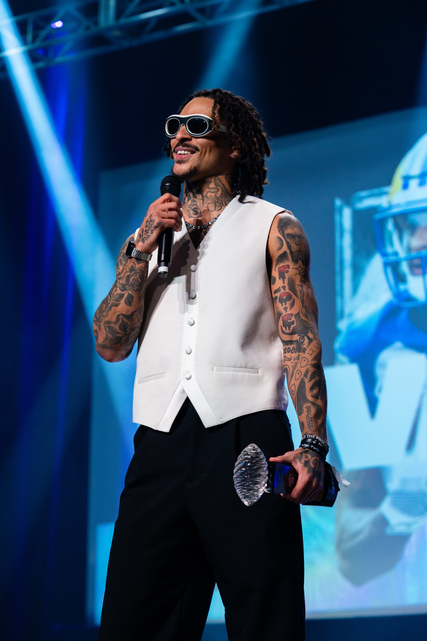 Not once, but twice, the Winnipeg Blue Bombers kick returner/cornerback stepped under the spotlight to accept honours — first as the CFL’s Most Outstanding Special Teams Player, then again as the Most Outstanding Rookie — all while sharply decked out in a white vest accentuated by black and white sunglasses/goggles.
