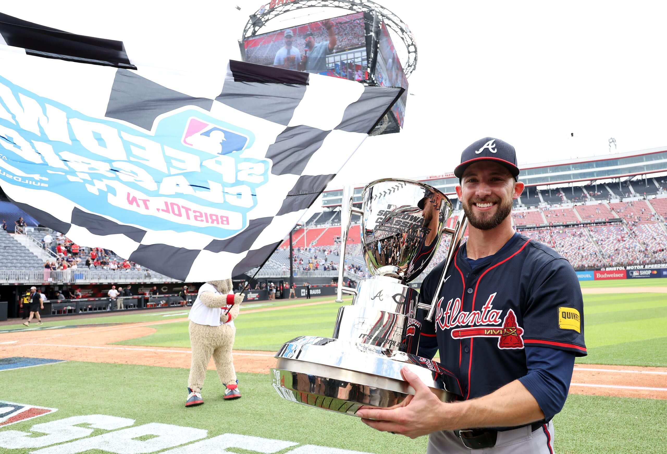 The Braves’ Eli White starred in the MLB Speedway Classic on Aug. 3, or was it Aug. 2? (Jamie Squire / Getty Images)