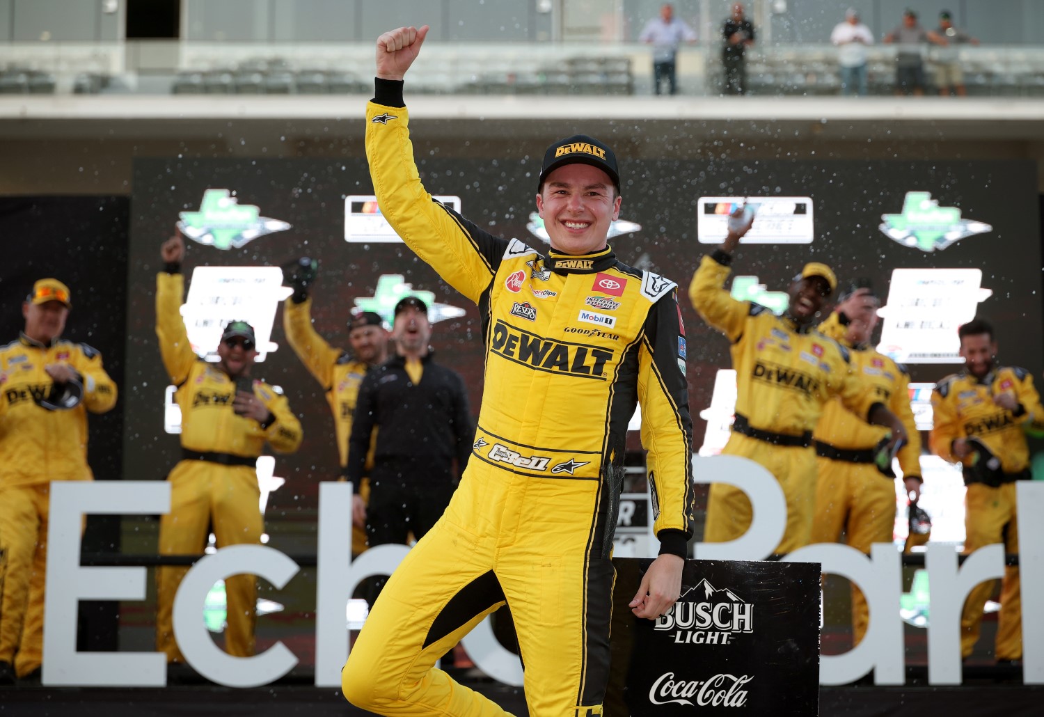 Christopher Bell, driver of the #20 DEWALT Toyota, celebrates in victory lane after winning the NASCAR Cup Series EchoPark Automotive Grand Prix at Circuit of The Americas on March 02, 2025 in Austin, Texas. (Photo by James Gilbert/Getty Images for NASCAR)