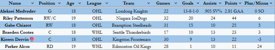 With 20 goals and 24 assists, Patterson sits fifth leaguewide by points and is just seven away from being the top scorer in the entire OHL. Interestingly, only eight of those 44 total points have come from the man-advantage, making him one of the premier producers at even strength.