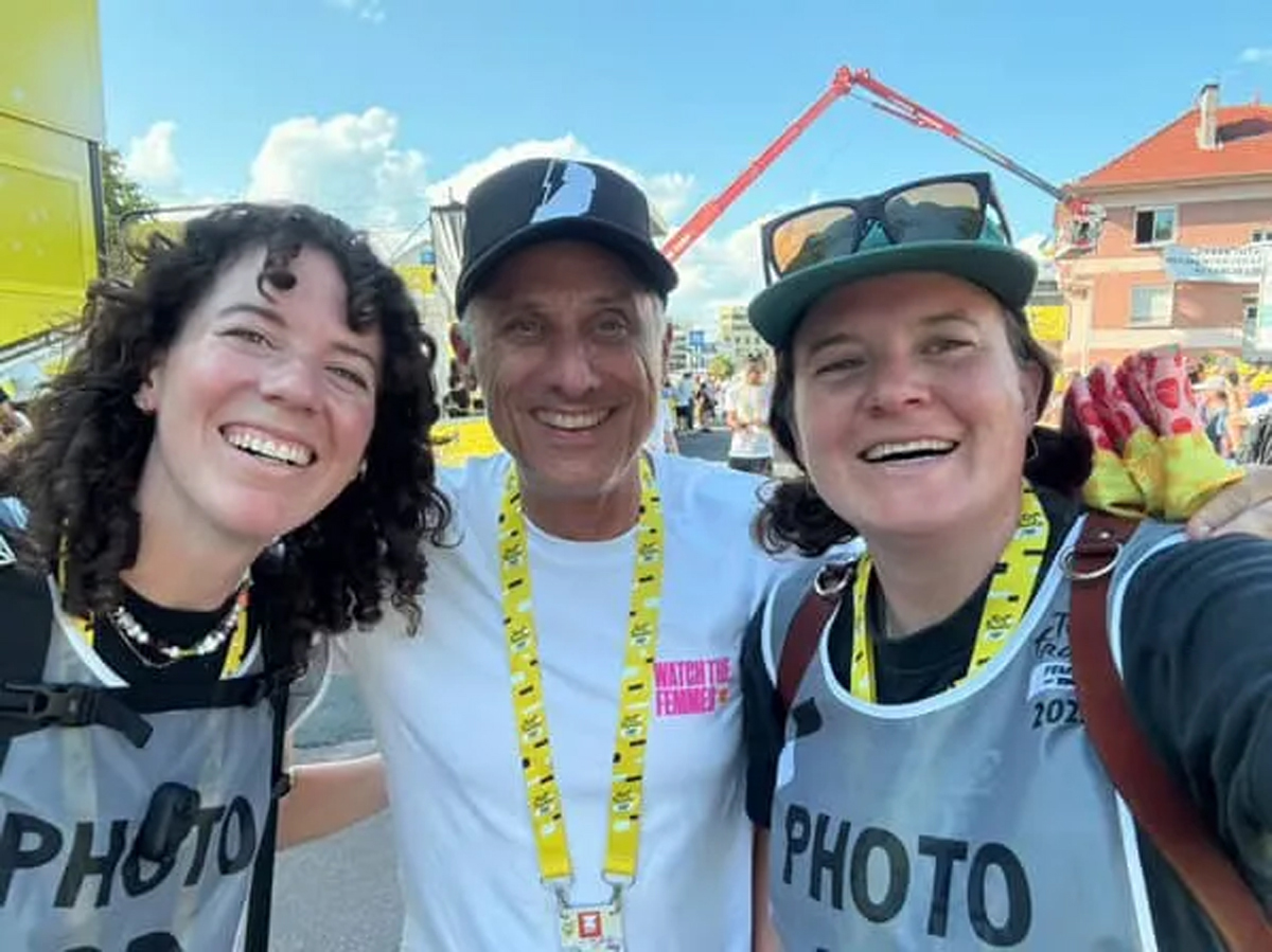 With sisters, friends and great photographers, Dominique and Gretchen Powers at the Stage 7 finish. Photo courtesy Peter Abraham