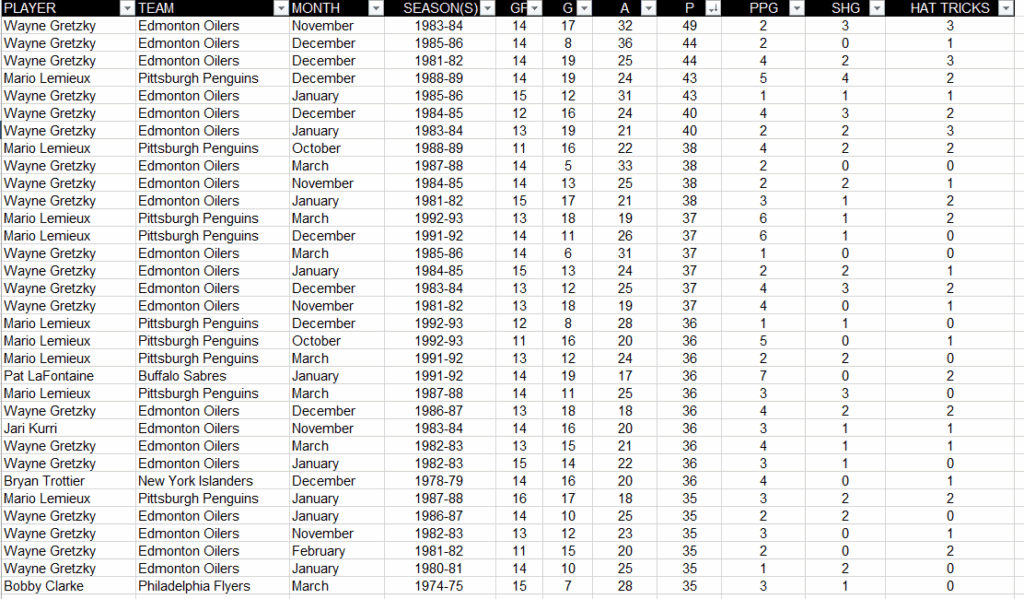 SNAPSHOTS…— Connor McDavid has already set a new career high with 33 points in one month, which ties him with Steven Stamkos for the most in the 2000s. Mario Lemieux had 34 points in December of 1995. If McDavid scores two points tonight and reaches 35 points in a month, he’ll become only the 7th player to do it.