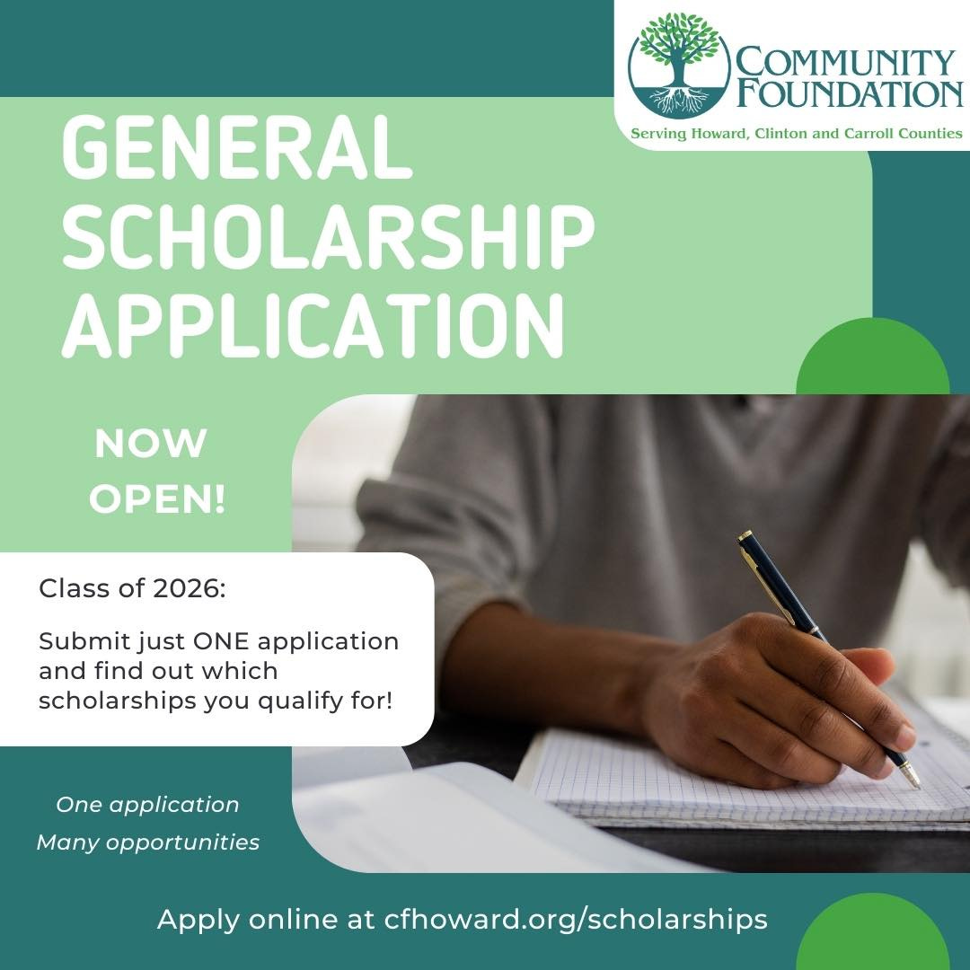 This article is brought to you by the Community Foundation Serving Howard, Clinton, and Carroll Counties. A new year brings new opportunities, and this one is just for you, Class of 2026! Our general scholarships application is available through March 1. Fill out just ONE application and you’ll then be matched to the scholarships you qualify for! Find our application portal at www.cfhoward.org/scholarships.
