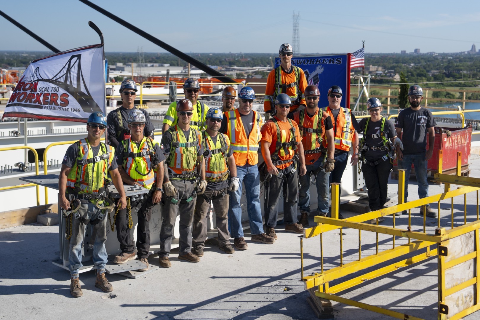 Members of the Iron Workers trade union who worked on the project – credit, Gordie Howe International Bridge.com