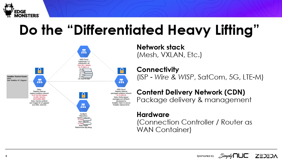 Cluster configuration is also a huge deal for the military service. The armed service needs to push an update to an edge node and have that go live across the fleet.