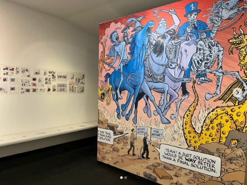 For background on the artwork in this exhibit, read our prior coverage: “Joe Sacco and Art Spiegelman Collaborate on Gaza Comic,” and “Sacco & Spiegelman ‘Never Again’ Art Auction Benefit Palestine Children.”