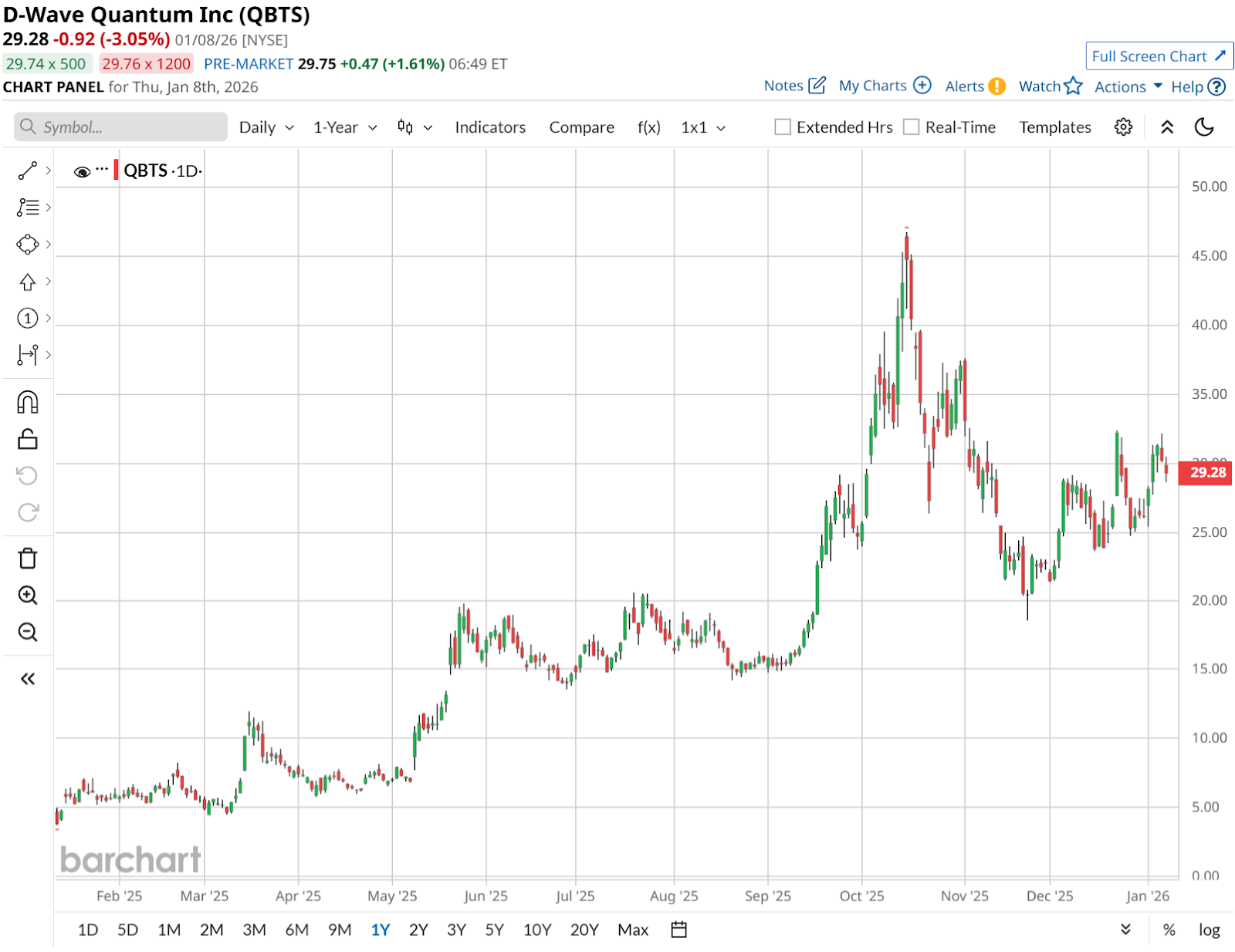 D-Wave Quantum (QBTS) makes money in a few connected ways. It provides cloud access to its annealing quantum computers, builds out gate-model systems, and sells software and services that companies can use for optimization and increasingly AI-related work. Over the past 52 weeks, QBTS is up roughly 360% and up 7.5% year-to-date (YTD), which shows a shift in sentiment.